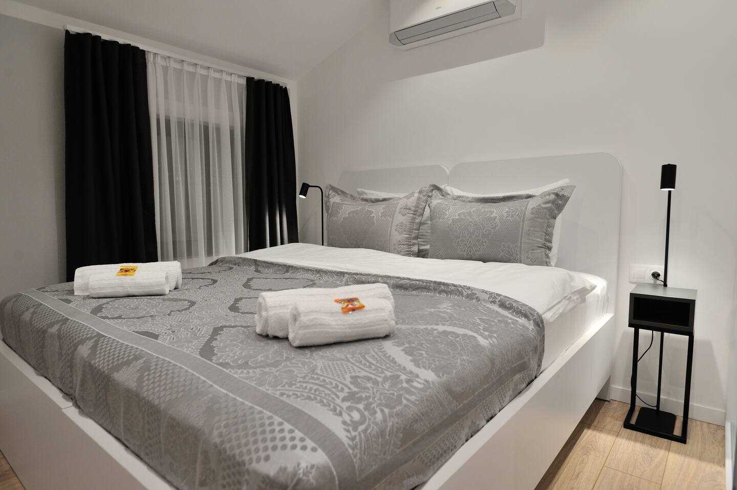 Recently this apartment has been officially categorized with four (4) stars. What else is of interest for you? This apartment is part of a newly build building which is at the same time one of the most beautiful in all of Mostar. You reach a shop with everything for ones daily requirement within 15 meters, a pharmacy and a bakery are 50 and 60 meters next to the building. Overall, the building is near to the old-town and to the city centre - overall booking gave us 10 points for the location. Noise is no issue, air-conditioning is included in the sleeping and the living room. All in all, this is the perfect spot to get to know Mostar better and / or start experiencing the beautiful nature and environment here in Herzegovina region.