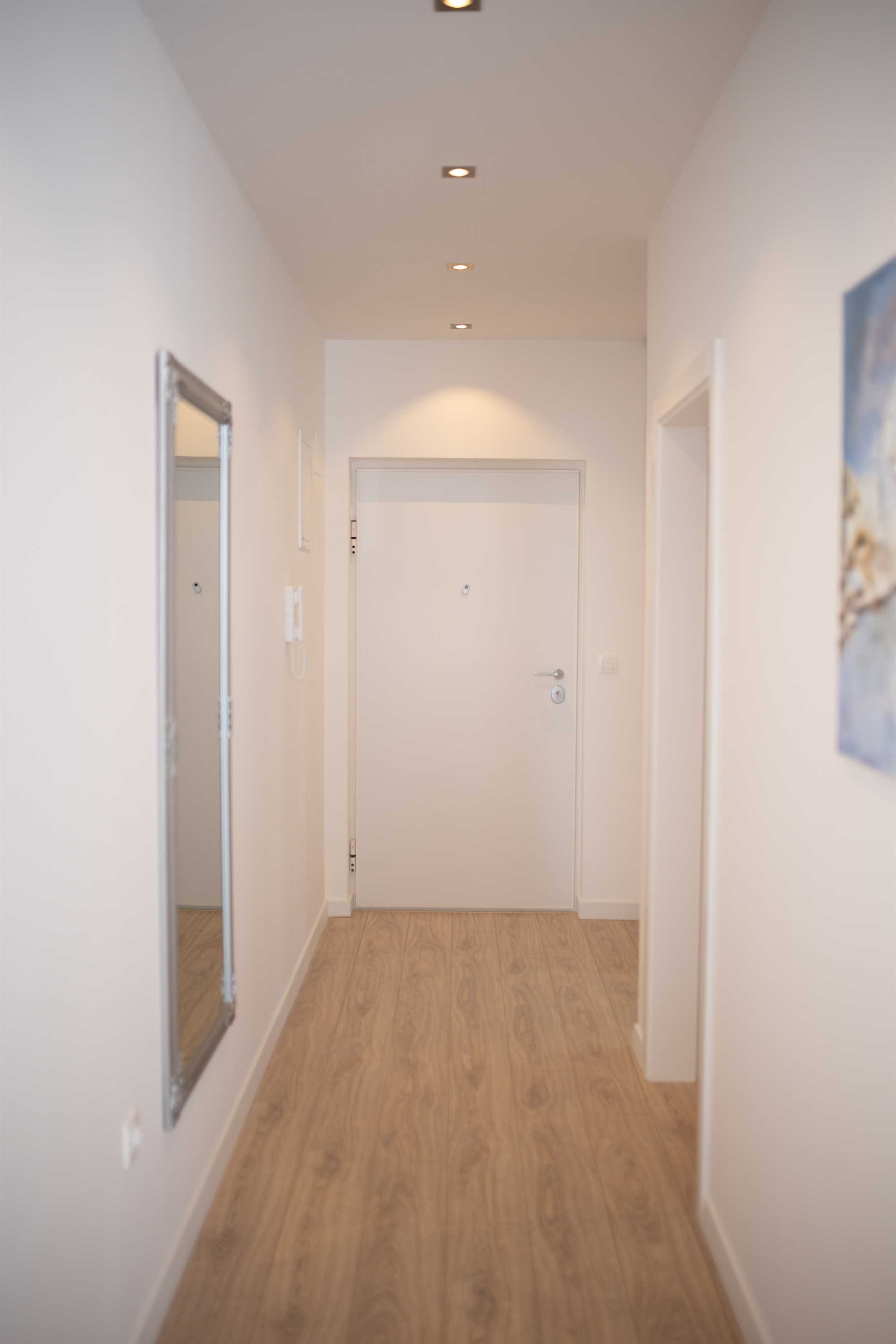 We are happy to offer you this new and mordernly equipped apartment on the third floor of a recently built building. The lift brings you directly to the safety door of the apartment which is located at the backside of the building. From there you can enter the nice daylight shower bathroom and reach the sleeping room. It contains two single beds with 210x90cm each for your conveniance. Bedding and mattresses are in hotel quality. As are the towels and curtains (black out) in the apartment. Our offer also includes free parking with video surveillance. This apartment has a southern balcony, too.